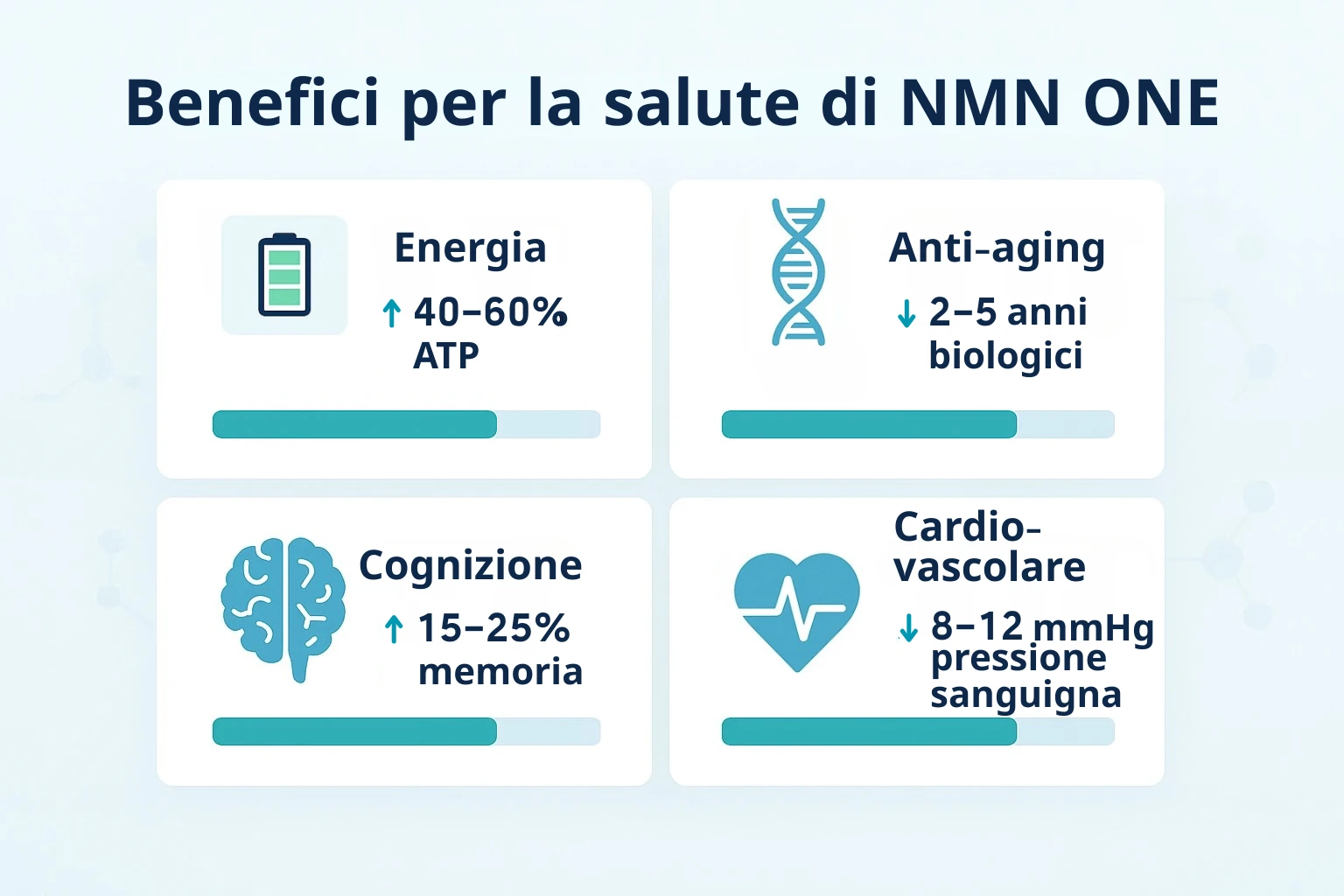 - NMN One: Sviluppato da medici, purezza farmaceutica 99,8%