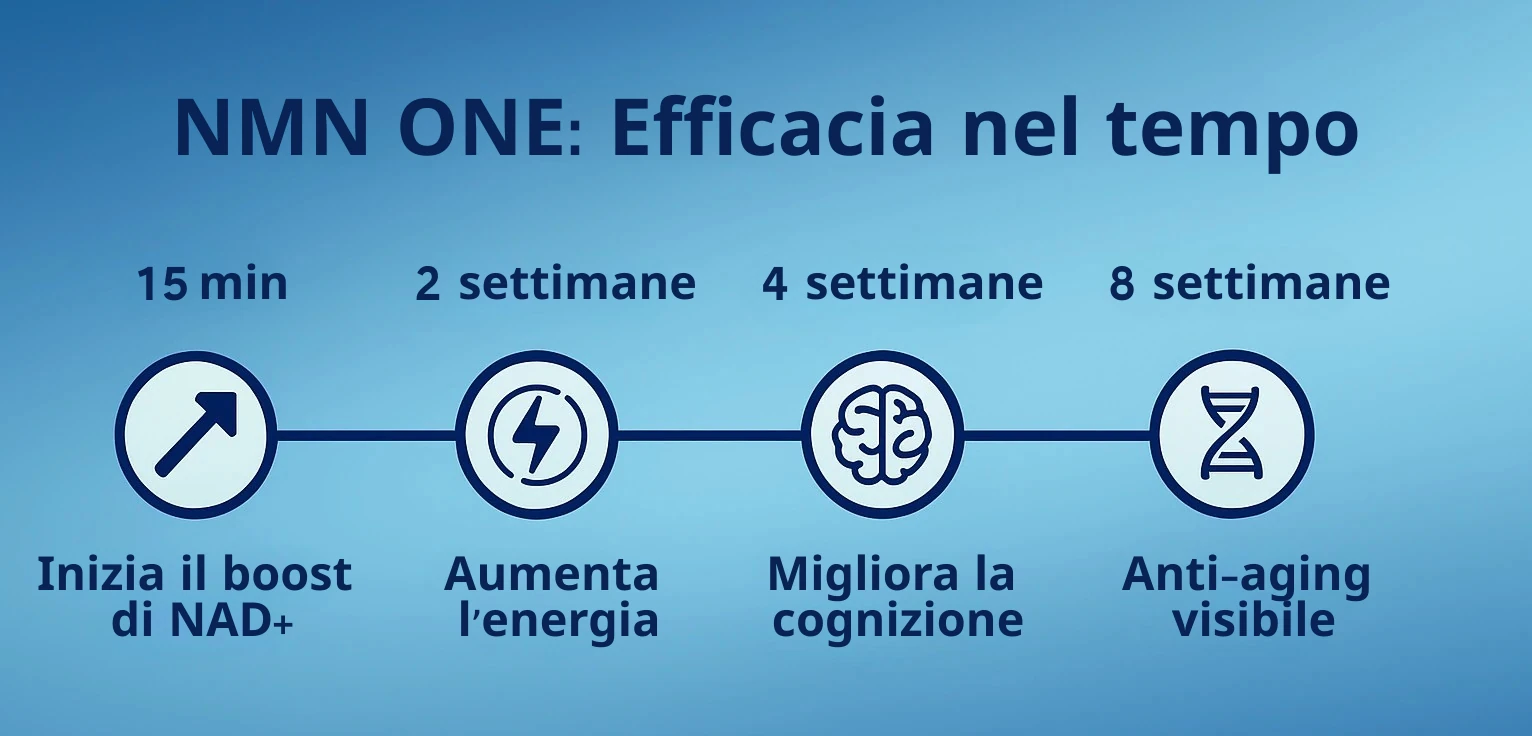 Gli studi scientifici mostrano aumenti misurabili del NAD+ nel giro di poche ore, mentre il ringiovanimento biologico richiede diversi mesi di integrazione regolare.